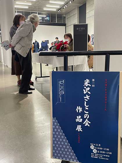 令和7年11月29日30日、2日間に渡って行われた第一回米沢さしこの会作品展は、たくさんのお客様にご来場いただき(200名)ありがとうございました。2日目30日には、原方さしこ作家の遠藤きよ子先生がご来場また特別出展もして頂きお元気な姿を拝見できました。久しぶりにお会いしたご来場の皆さんにも大変喜んでいただきました。ワークショップも定員を超えるお客様で刺し子の楽しさを体験していただきました。
